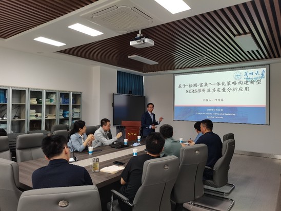 2023年6月2日, 应beat365英国官网、甘肃省原子分子物理与功能材料重点实验室邀请,南方科技大学钟锦辉副教授、兰州大学叶为春和李月娥教授为公司师生分别作了题为“等离激元-激子耦合体系的超快光谱研究”、“基于‘检测-富集’一体化策略构建新型SERS探针及其定量分析应用”和“融合人工智能的拉曼生物检测应用”的学术报告。本次报告会由经理张登红教授主持,学院相关教师和研究生参加了此次学术交流会。