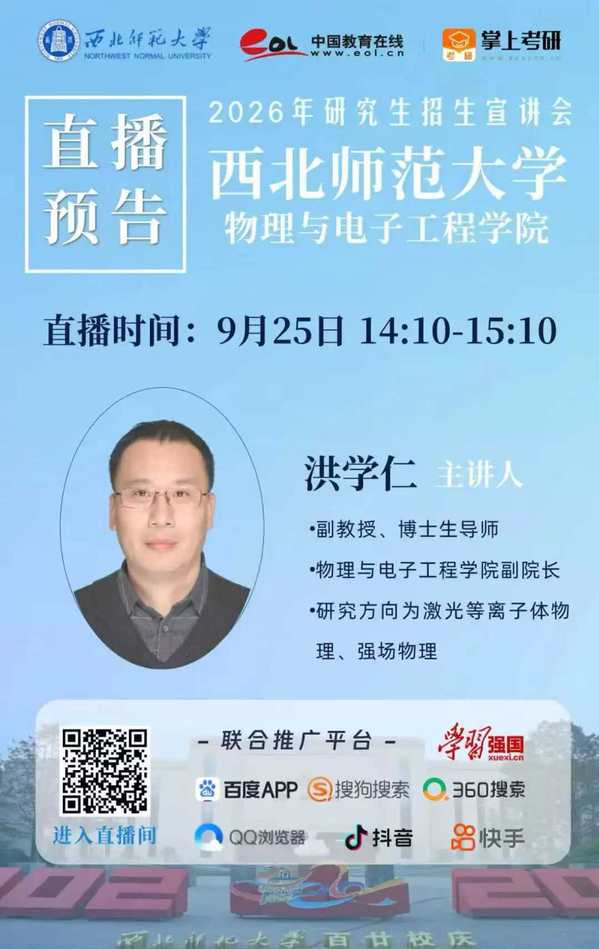 招生系列宣传活动不仅增强了学校和学院的知名度和吸引力,也为2026年研究生招生工作奠定了坚实基础。beat365英国官网将继续优化宣传策略,拓展宣传渠道,深化与兄弟院校的合作交流,持续推进优质生源拓展工程,努力吸引更多有志于从事物理学、电子与信息技术、学科教学(物理)等专业研究的优秀学子加入beat365英国官网,共同书写高层次人才培养的新篇章。